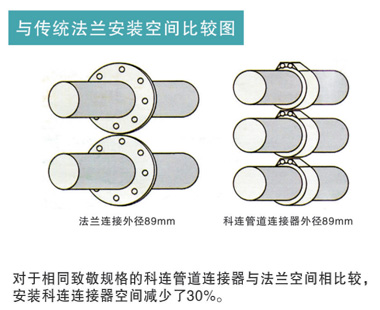 本公司設 計的管道連接器 、管道修補器具有 :代替法蘭 、快速連接 、免動火 、施工簡單 、效率高 、節省空間 、 降低成本 、 針對不同介質不同材質的管道連